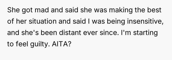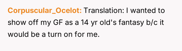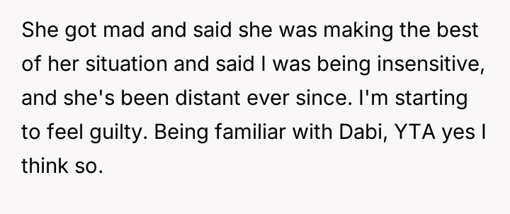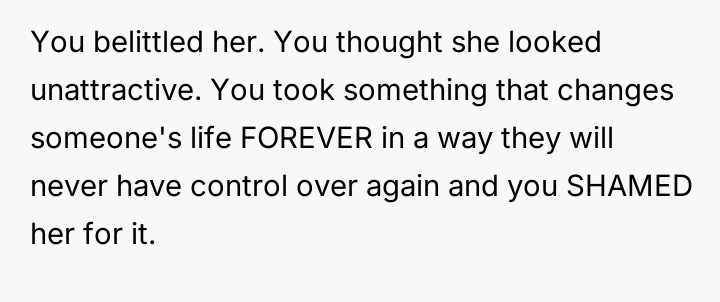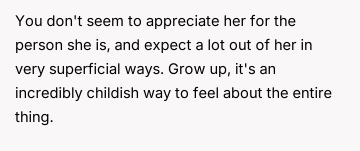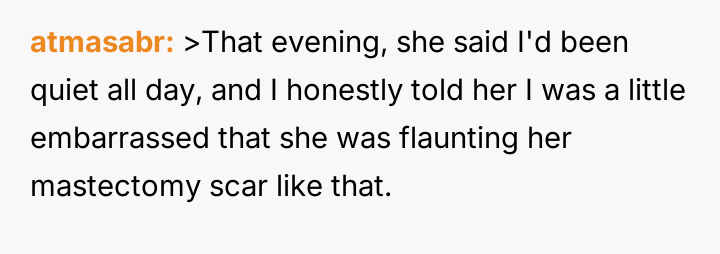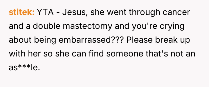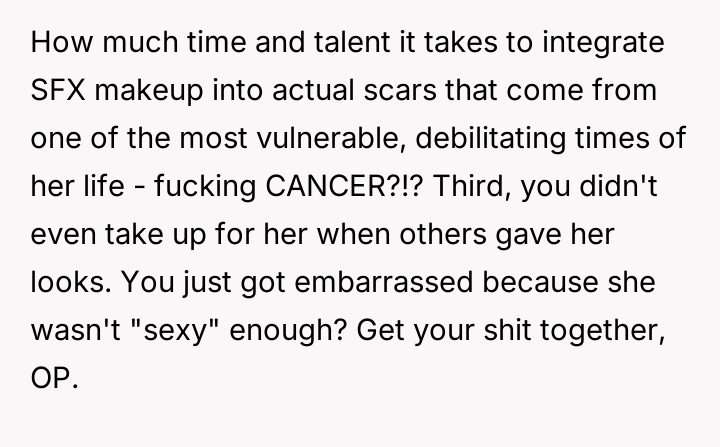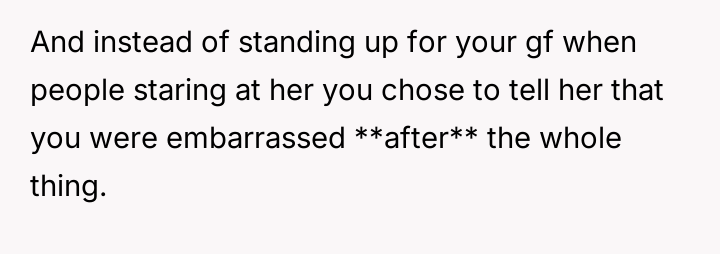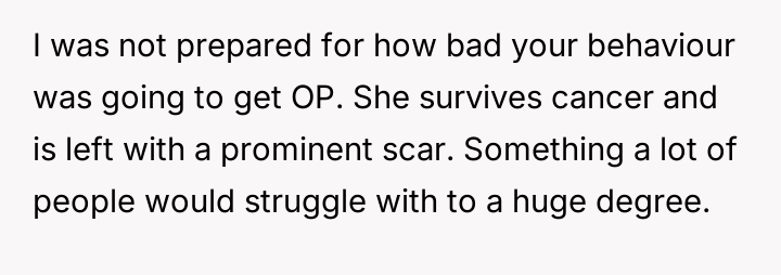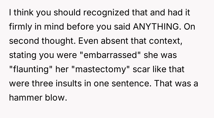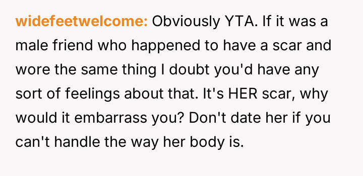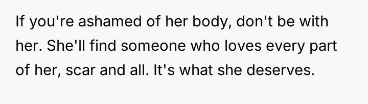 His subsequent expression of embarrassment led to significant conflict, as the girlfriend felt invalidated regarding her personal decision to incorporate her medical history into her artistic expression.