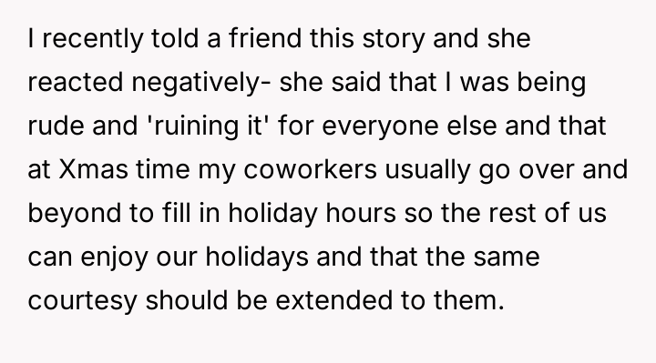 The central conflict lies between the OP's desire for fairness and the implied expectation that non-religious employees should not seek equivalent breaks, especially considering the goodwill shown by the religious group during holiday scheduling.