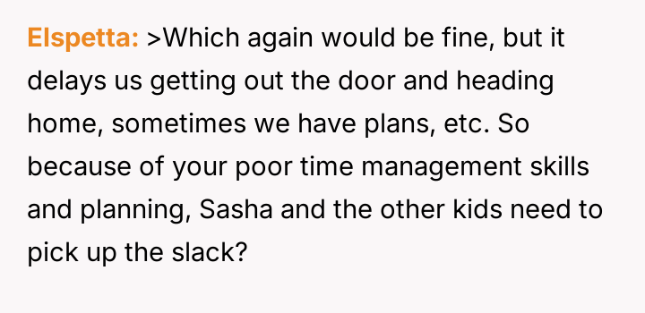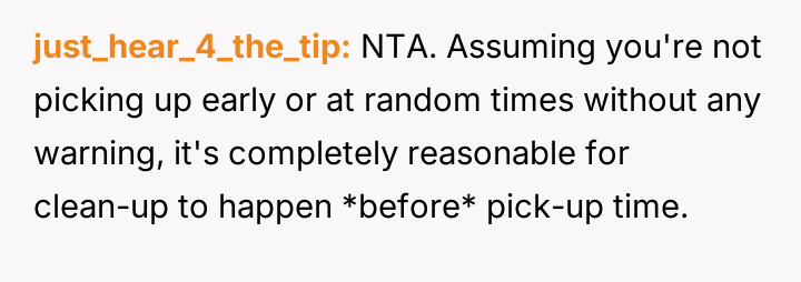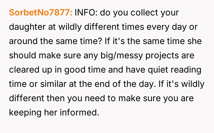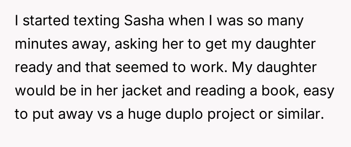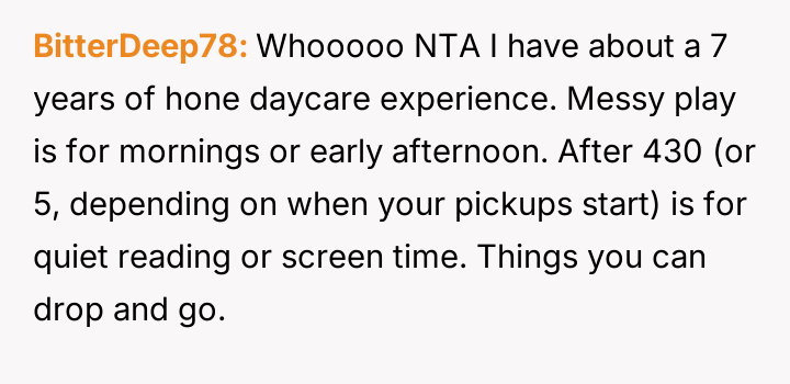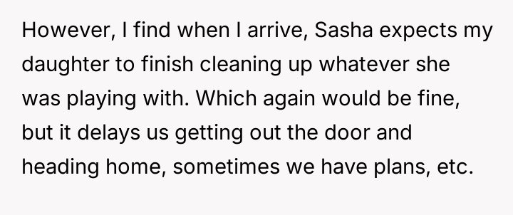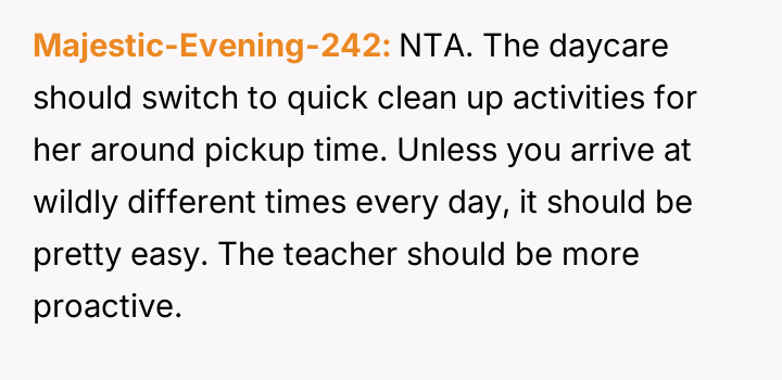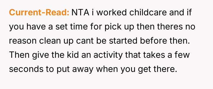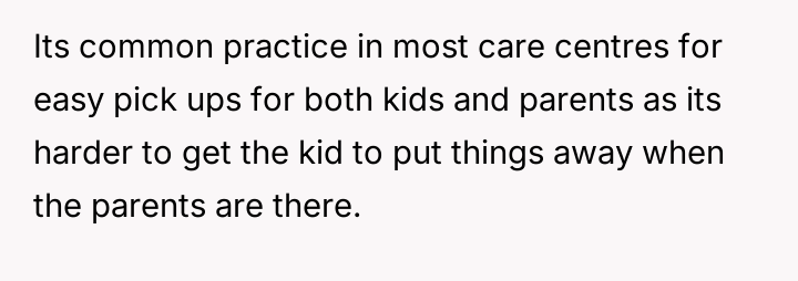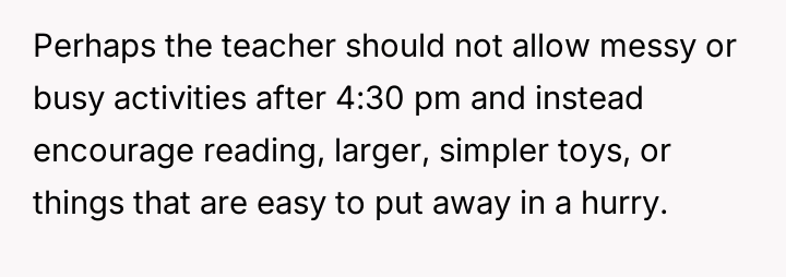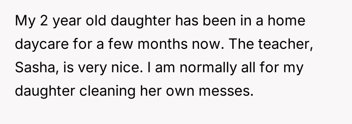 AITA for telling my child’s daycare teacher that my child won’t finish cleaning up?