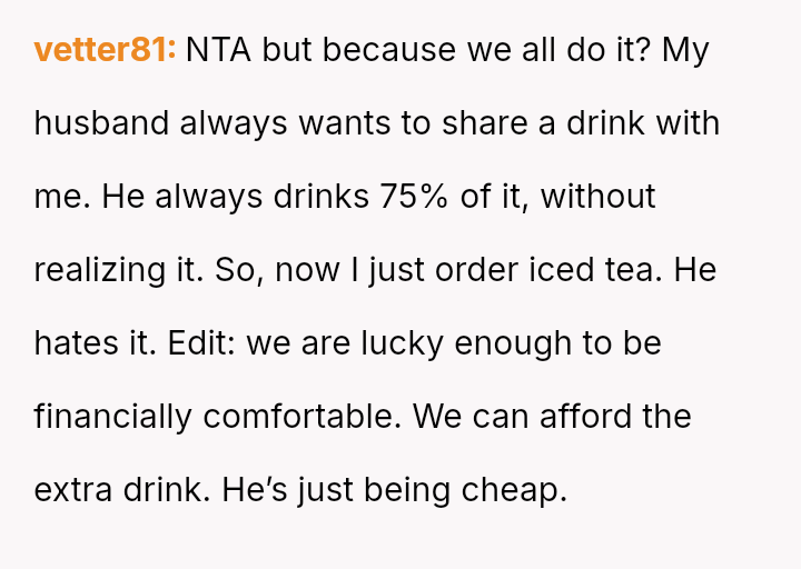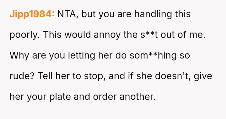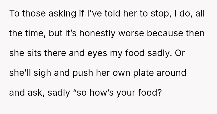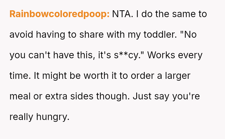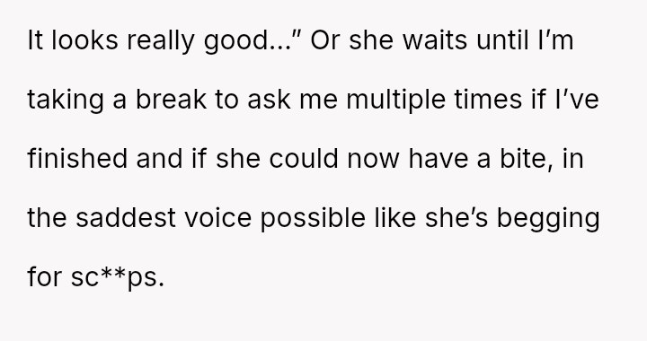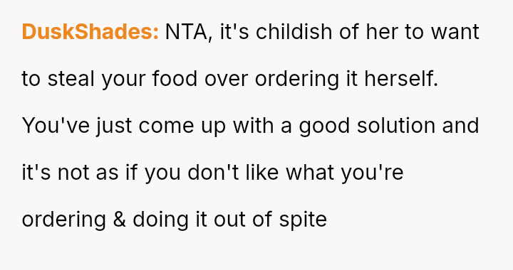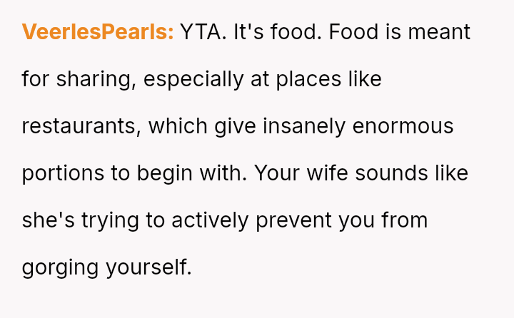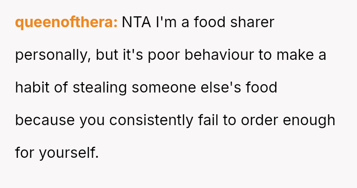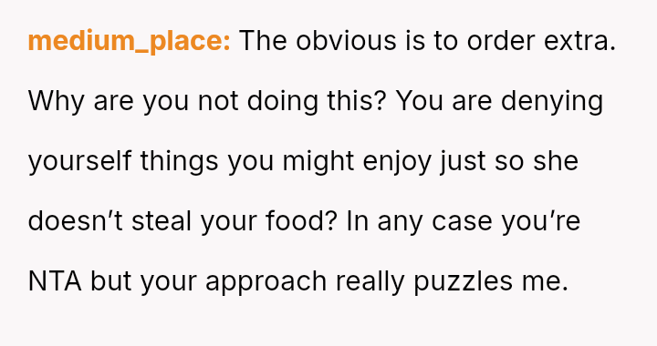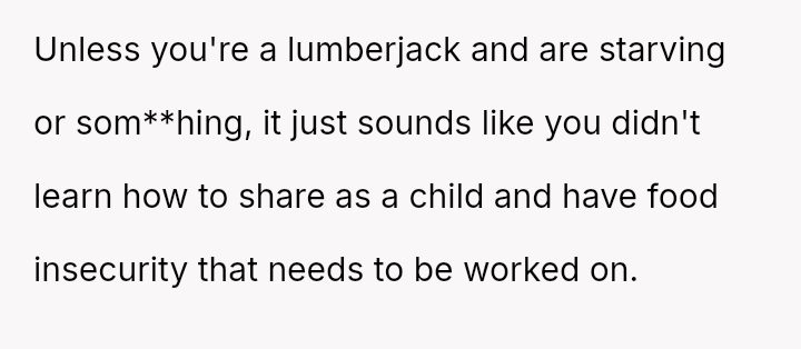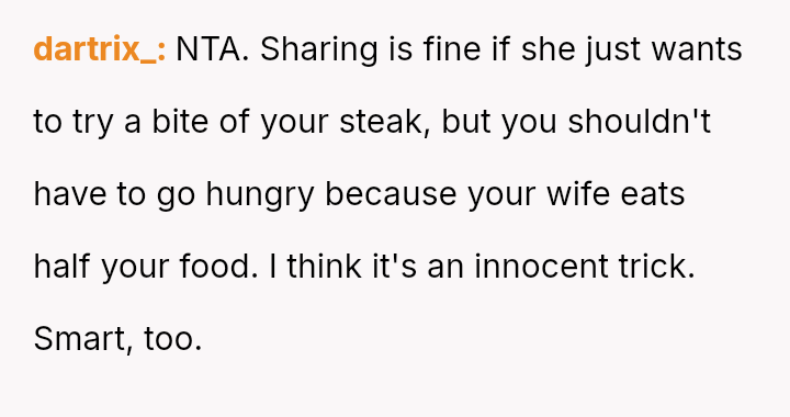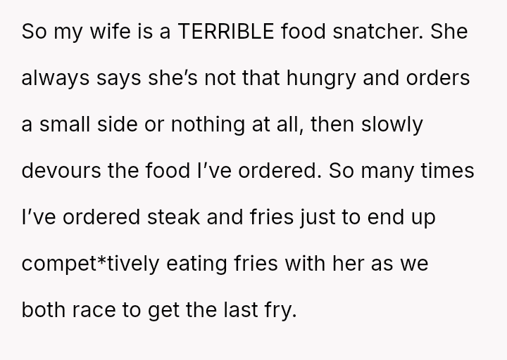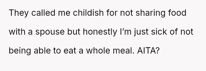 Was the OP justified in using pa*sive-aggressive food selection m**hods to protect their personal meal from their spouse's constant 'snatching,' or does this behavior betray a necessary duty to share within a marriage?