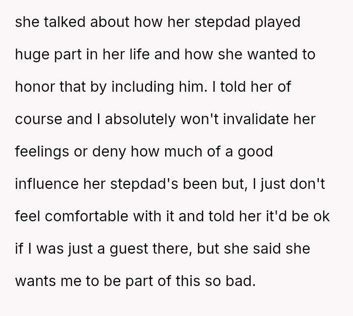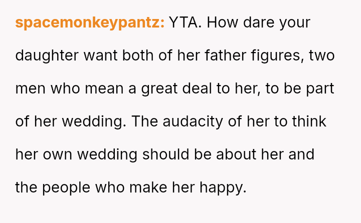 Given the daughter's strong desire to honor both parental figures at her wedding, is the OP prioritizing their personal feelings of resentment and comfort over participating in a key moment of their daughter's life, or is the daughter unfairly demanding the OP sacrifice their emotional well-being to avoid upsetting her?