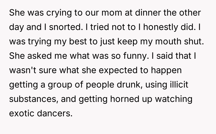 AITA for asking my sister WTF she expected to happen at her shitshow of a bachelorette party?