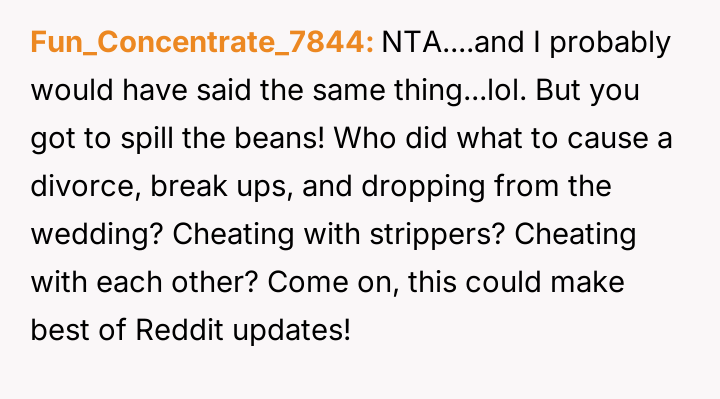 Given the significant fallout—including multiple breakups and a major expense—was the OP obligated to offer sympathy instead of voicing their accurate, albeit insensitive, prediction about the predictable nature of the event's outcome, or were they justified in their honest reaction?