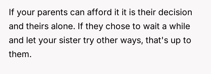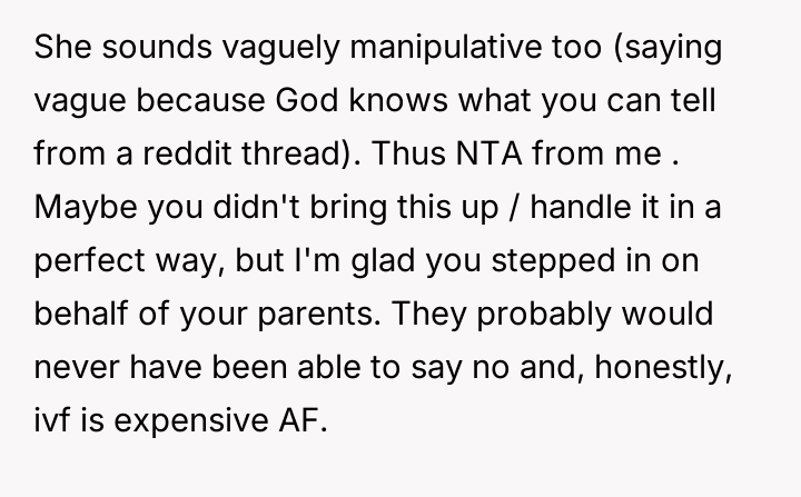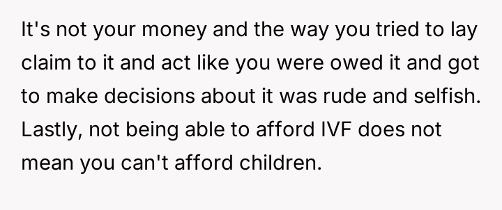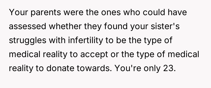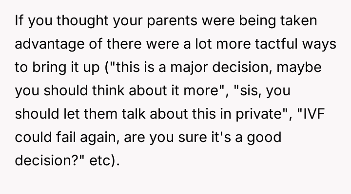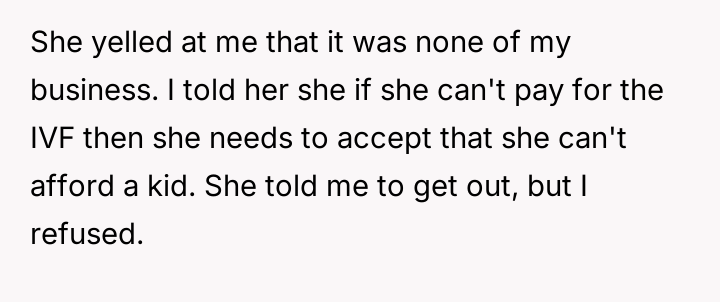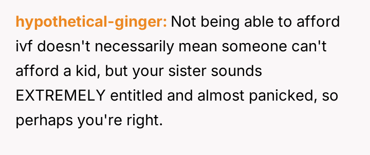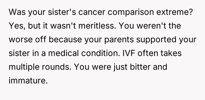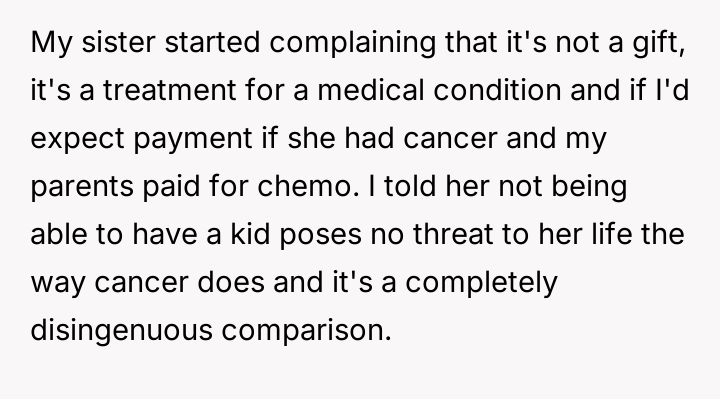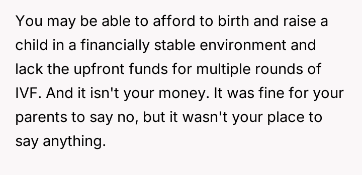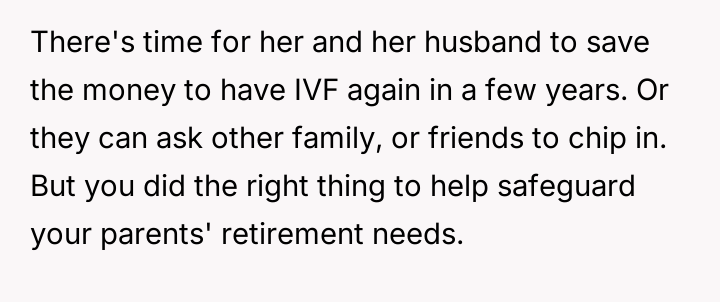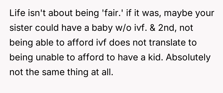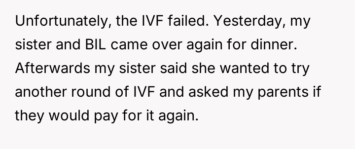 AITA for stopping my parents from paying for my sister's IVF and telling her she can't afford to have a kid