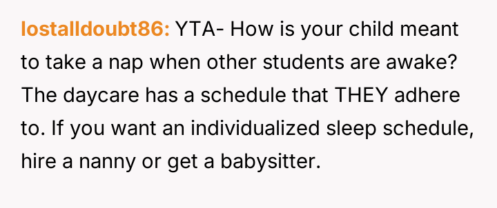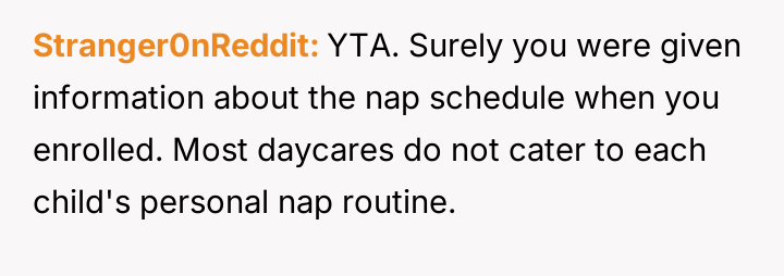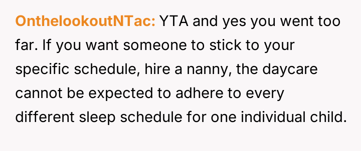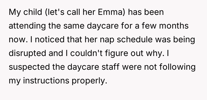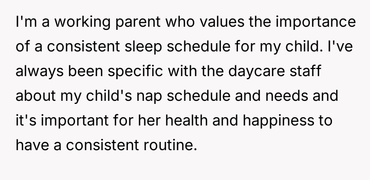 AITA for getting into a dispute with the daycare staff over my child's nap schedule?
