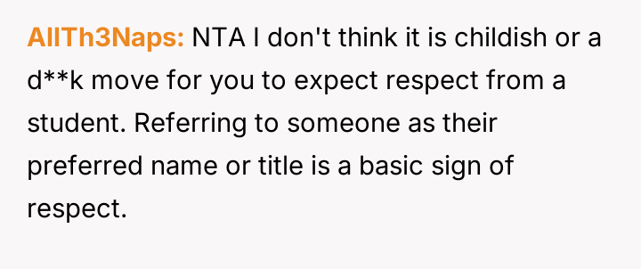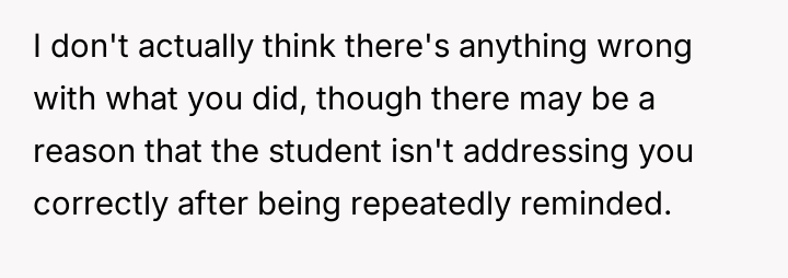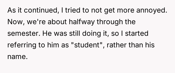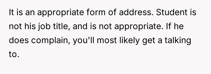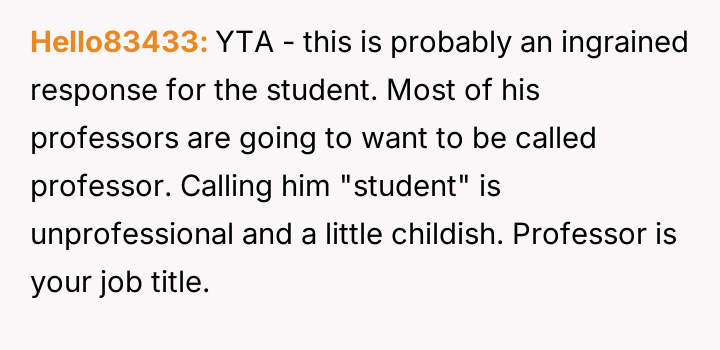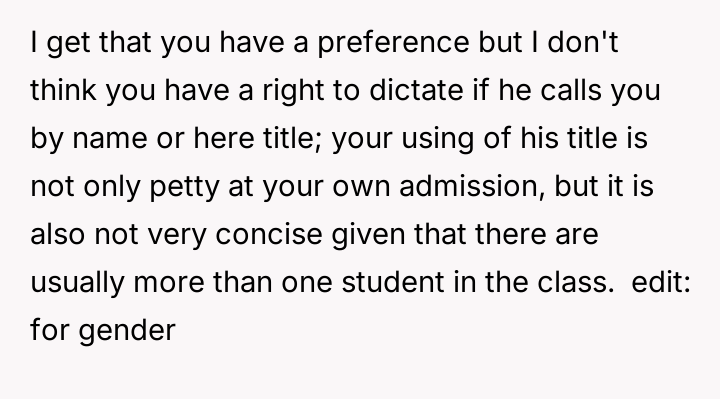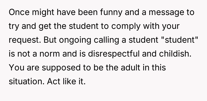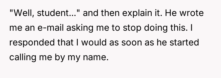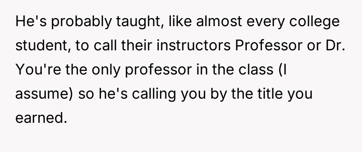 AITA for calling my student "student" because he refuses to stop calling me "Professor"?
