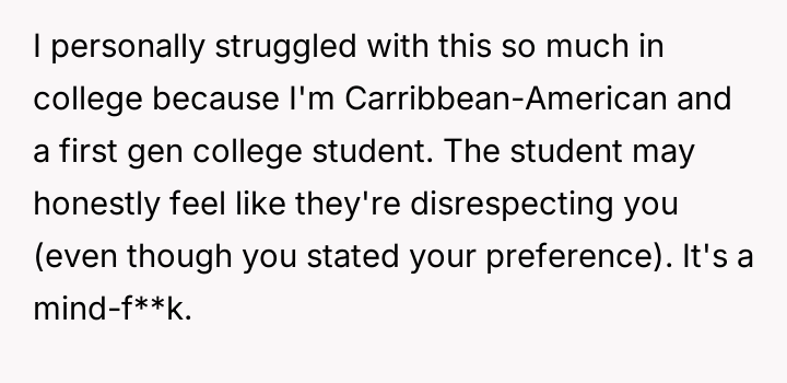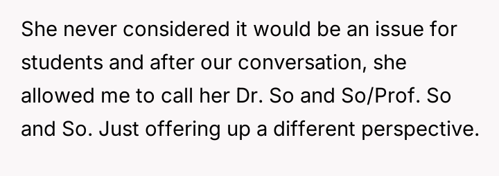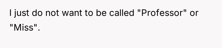 Despite clear requests to be called by her preferred names, the student persistently insists on addressing her as "Professor," a title she deliberately avoids, igniting a quiet but growing tension in the classroom.