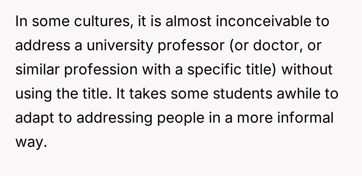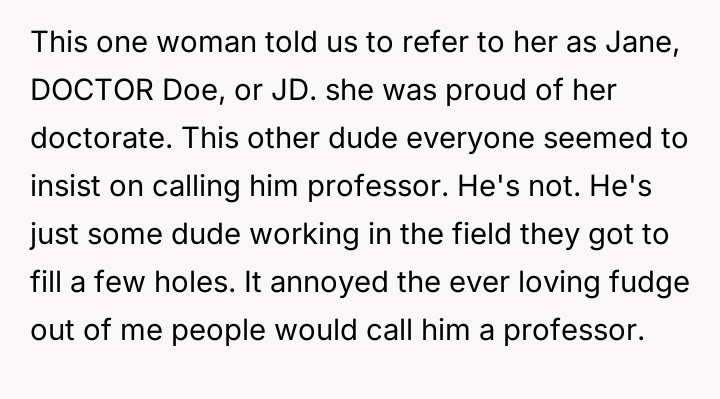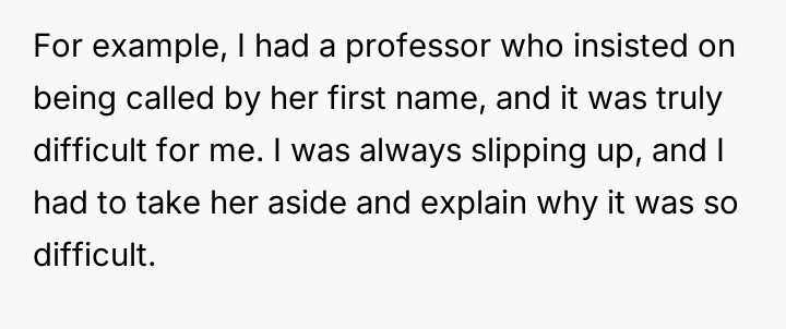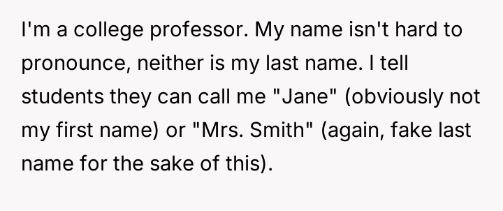 The core conflict revolves around the professor's clearly stated preference for a specific form of address ("Jane" or "Mrs.