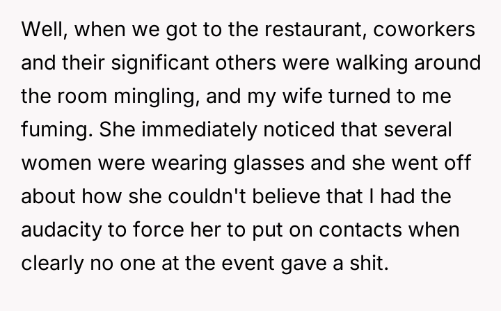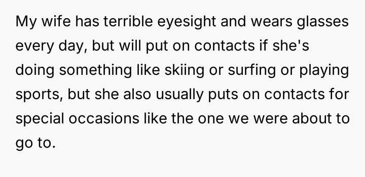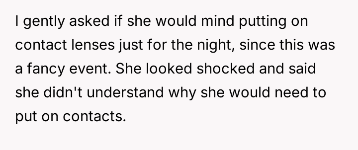 What began as a gentle suggestion about contact lenses spiraled into hurt feelings and unspoken resentments, overshadowing the festive spirit of the evening and leaving wounds that refused to heal.