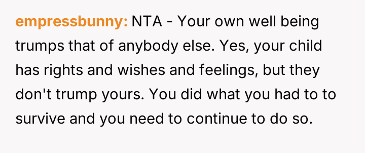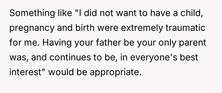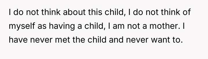 The original poster (OP) is firm in her decision to maintain complete separation from the child conceived under duress 13 years ago, a decision rooted in severe personal trauma from the pregnancy and delivery.