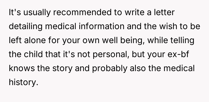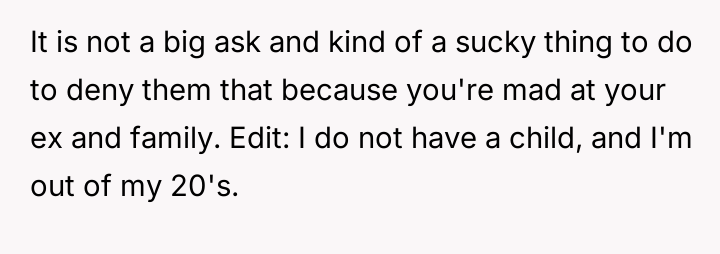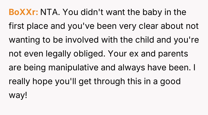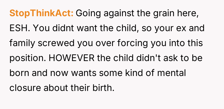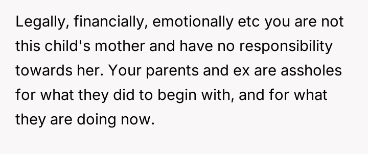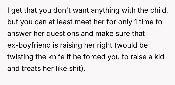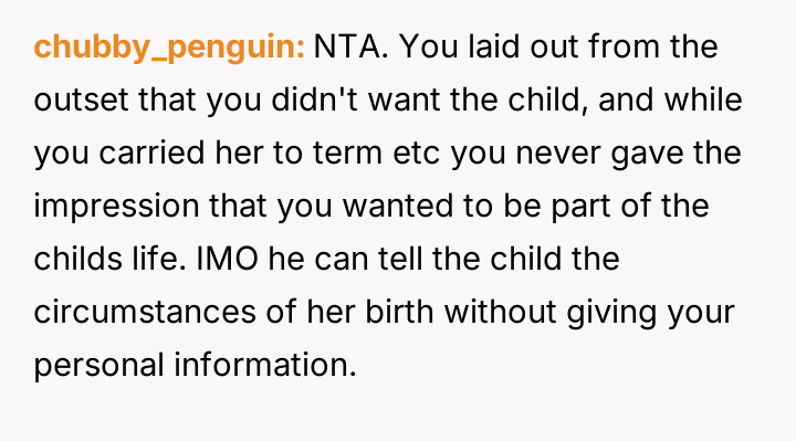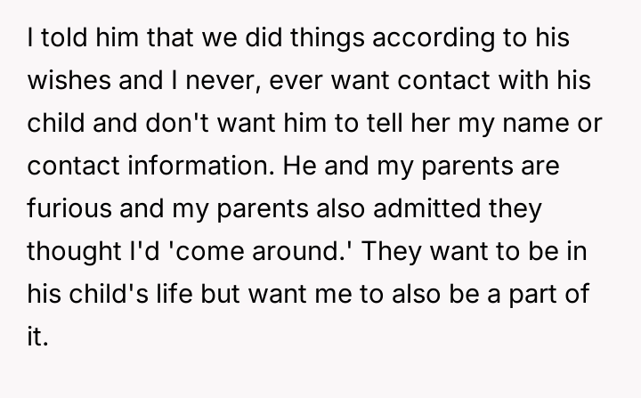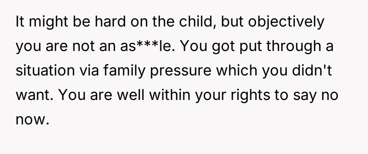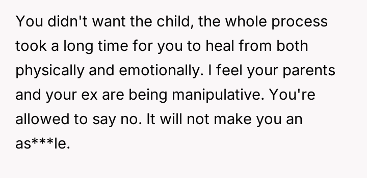 Given the OP's clear, consistent stance regarding non-involvement versus the pressure from her family and the ex-partner to facilitate contact, the core debate is whether the right to personal autonomy and trauma protection supersedes the relational needs of the extended family and the child's right to know their biological history.