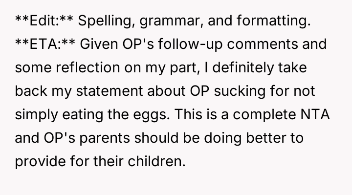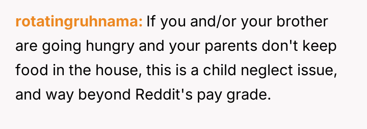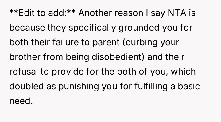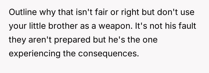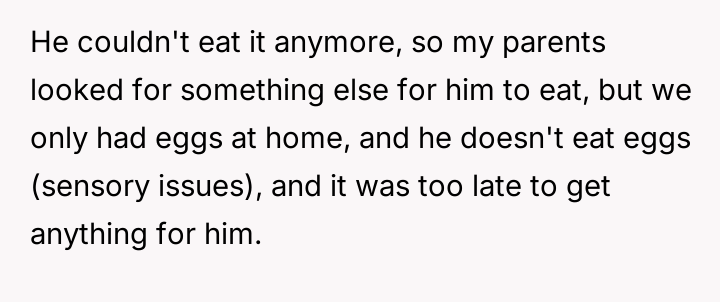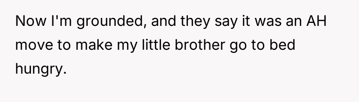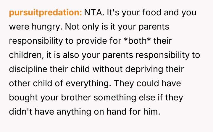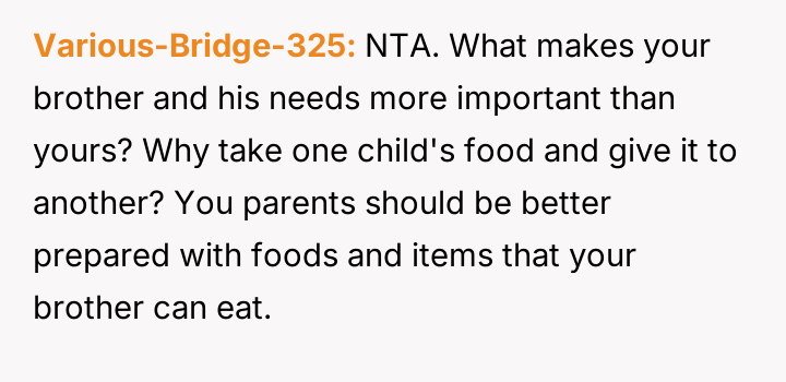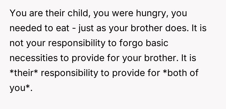 The original poster (OP) faced a conflict between their strong desire for a specific food they rarely get and their parents' demand to sacrifice their meal for their younger brother.