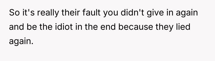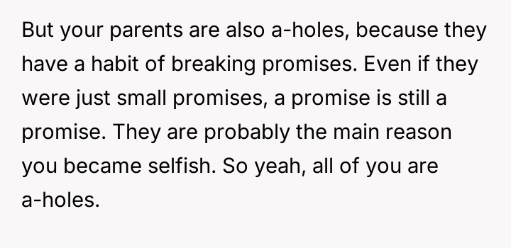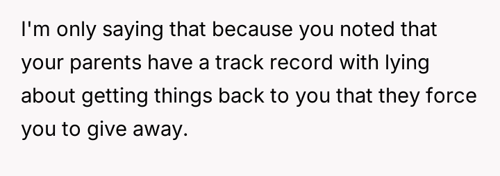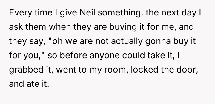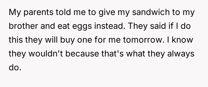 The OP's past negative experiences with parental promises influenced their decision to protect their sandwich, leading to immediate grounding.