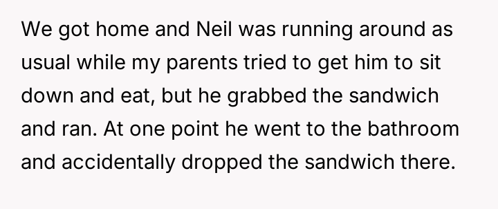 But the fragile joy quickly unraveled as Neil, restless and unpredictable, dropped his sandwich in the bathroom and refused the only other option: eggs.