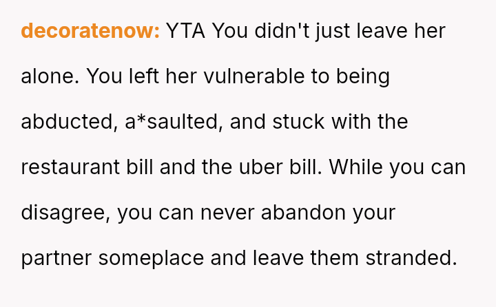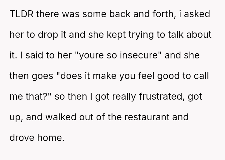 The original poster (OP) acted out of frustration after a disagreement escalated, ultimately leaving his girlfriend alone at a restaurant and ignoring her calls.