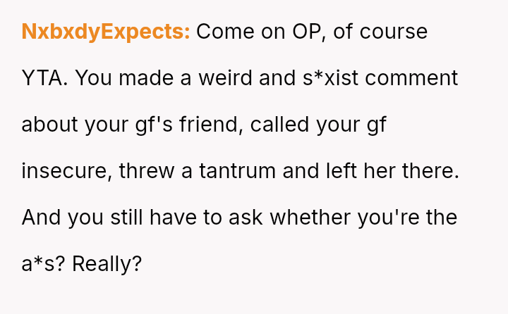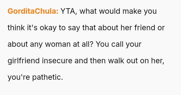 The central conflict stems from a difference in perceived acceptable humor and subsequent escalation tactics: the OP felt justified in making a joke and reacting strongly when challenged, while the girlfriend expected a more sensitive reaction and adherence to shared social norms regarding friendship boundaries.