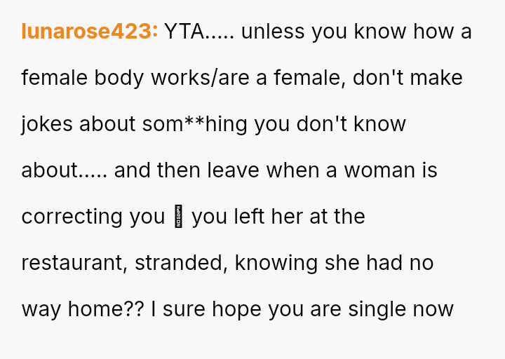 Was the OP justified in abruptly walking out on his girlfriend, leaving her stranded at a restaurant after a heated disagreement over a seemingly inappropriate joke? Or did the girlfriend overreact to the OP's behavior by escalating the situation after he left?