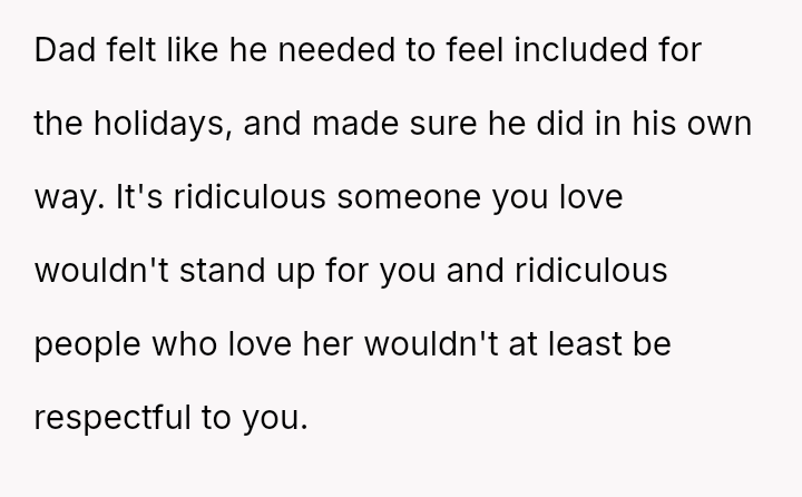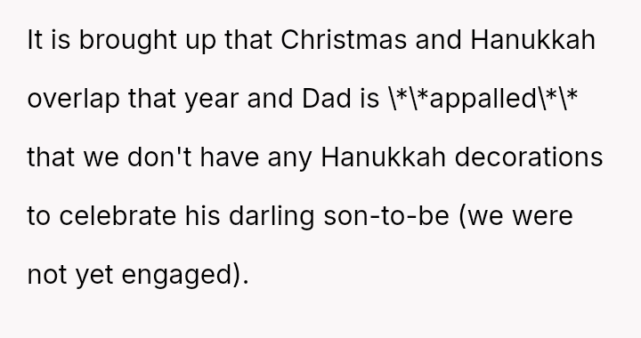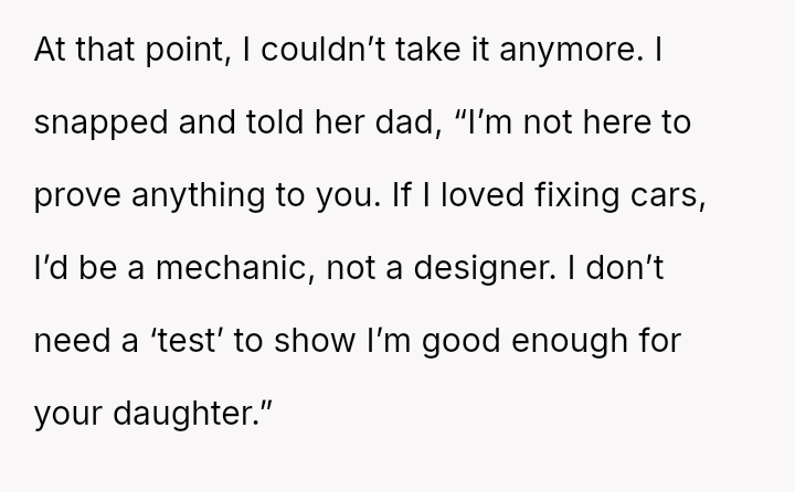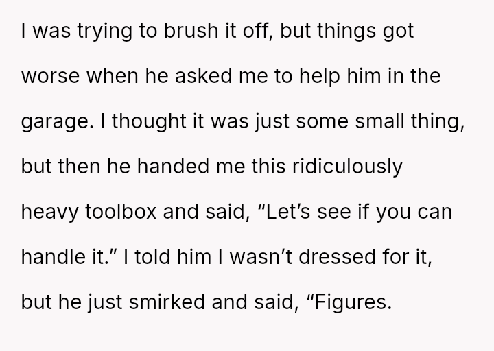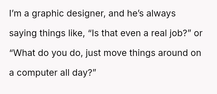 During a recent dinner at the parents' home, the father made repeated demeaning comments about the OP's career as a graphic designer and then demanded manual labor, which the OP refused due to attire.