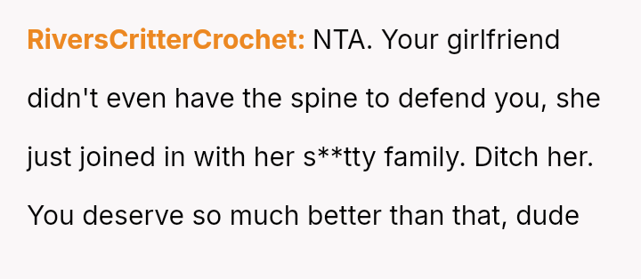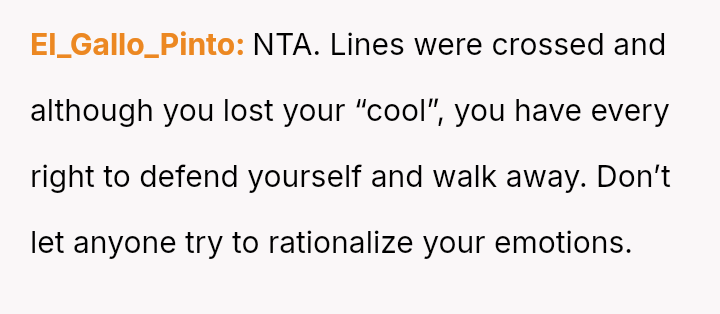 The immediate aftermath left the OP feeling uncertain about his explosive reaction while struggling with the lack of respect shown by his girlfriend's family.