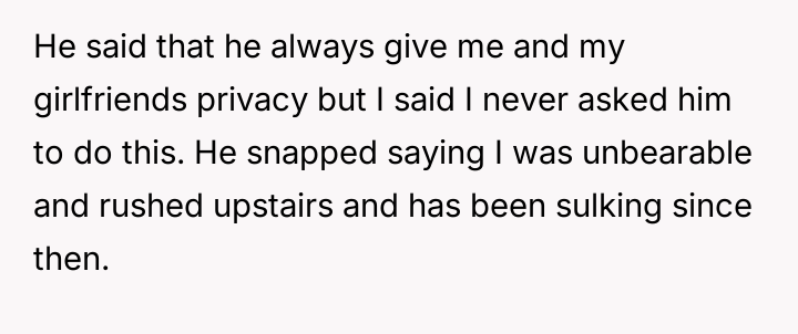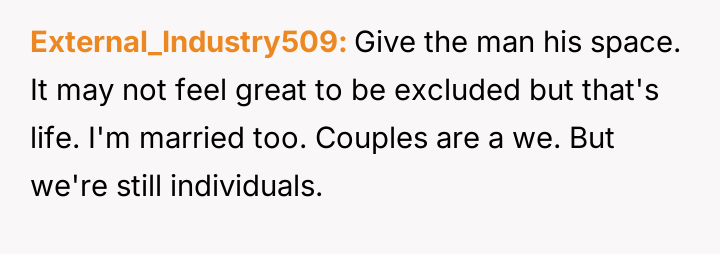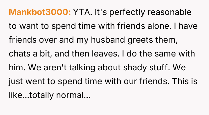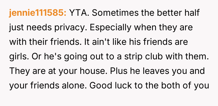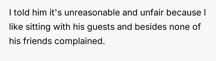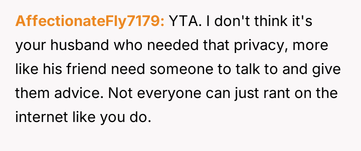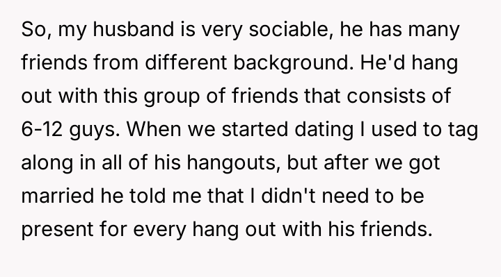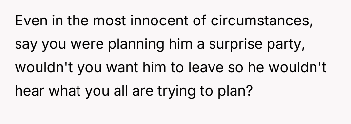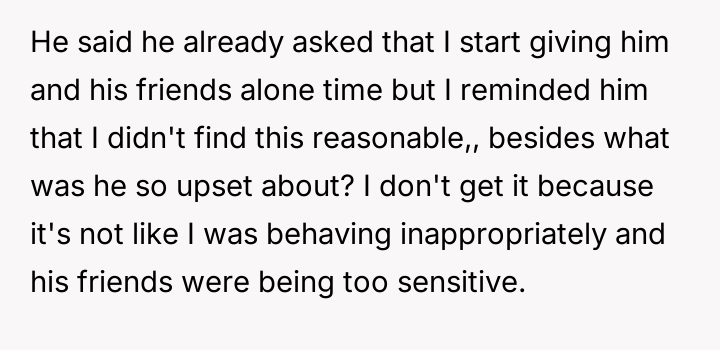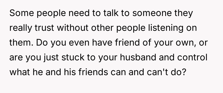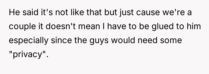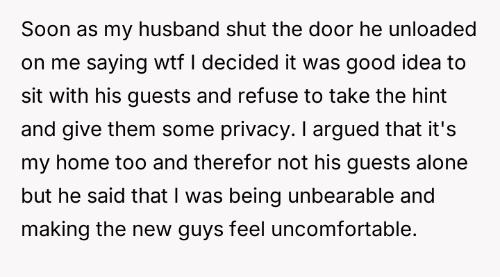 AITA for sitting with my husband and his friends although he told me he needed "privacy"?