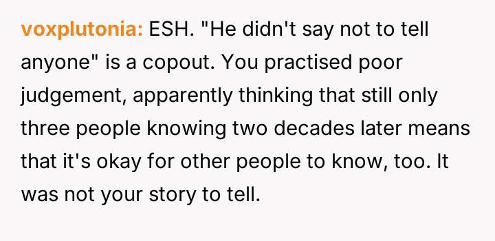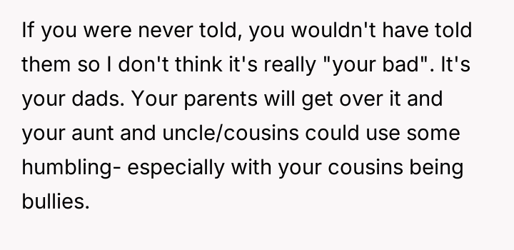 This action resulted in immediate negative consequences from the OP's parents, who were clearly invested in keeping the secret, creating significant family tension.