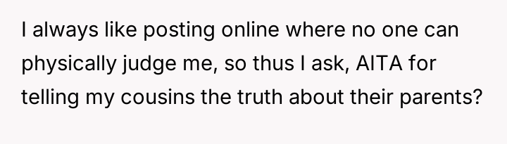AITA for telling my cousins the truth about their parents?