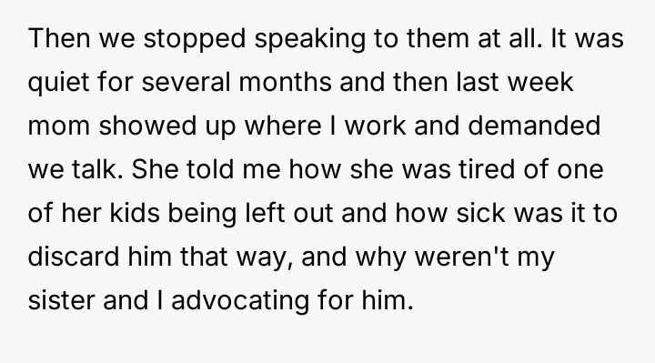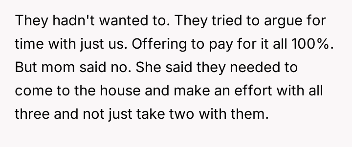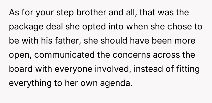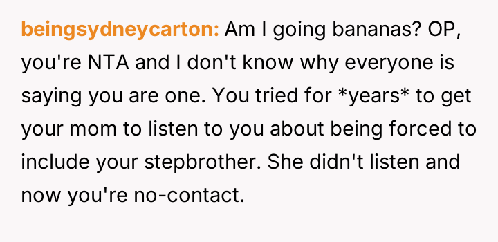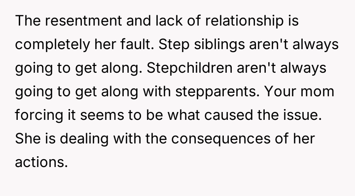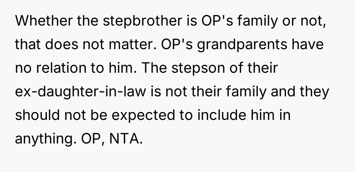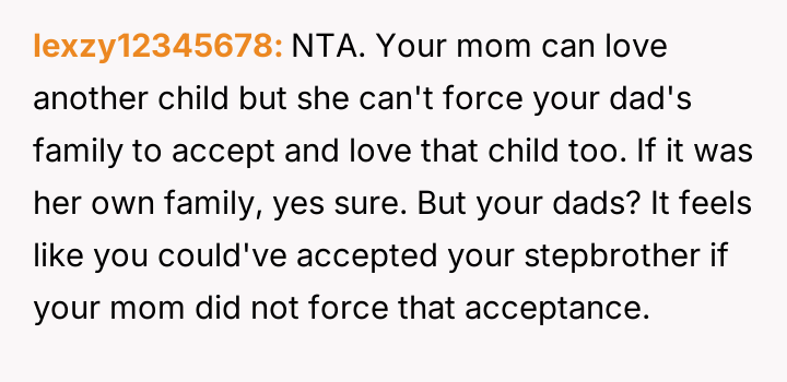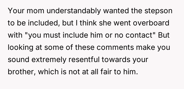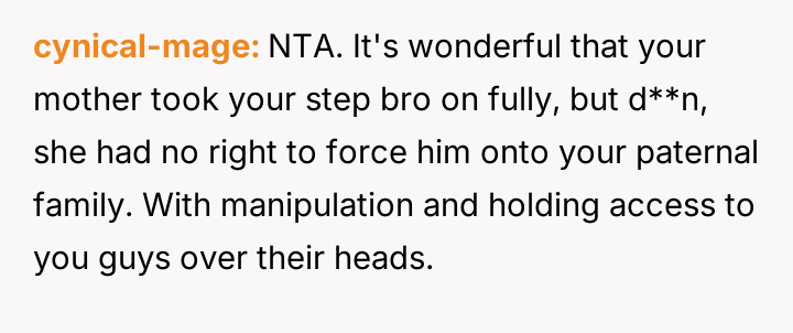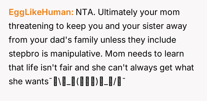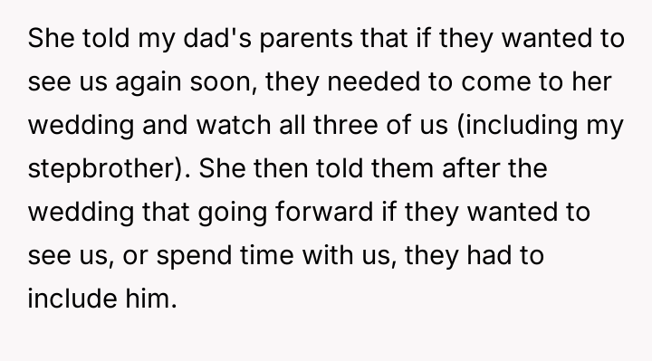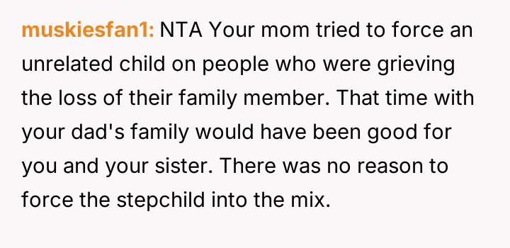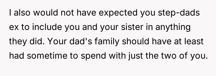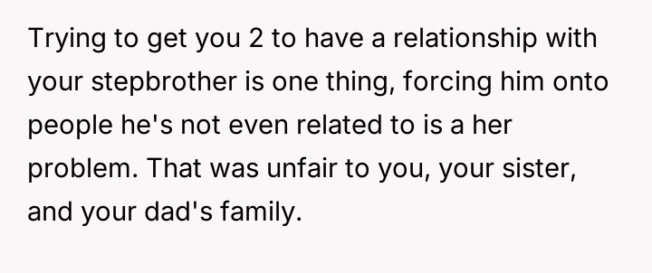 The original poster (OP) and his sister feel justified in creating boundaries regarding contact with their paternal family, stemming from their mother's insistence on including their stepbrother in all interactions.