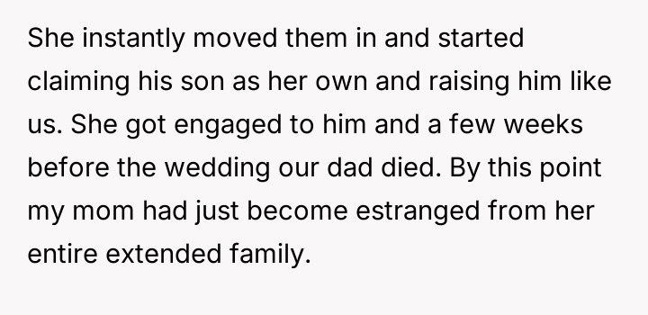As grief struck with the sudden death of their father, the siblings faced harsh boundaries set by their mother, who demanded unconditional acceptance of their stepbrother from their late father’s family.