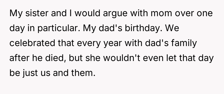 If the mother's primary goal was maintaining a unified relationship with all her children, was her method of enforcing inclusion, especially on sensitive days like the late father's birthday, counterproductive?