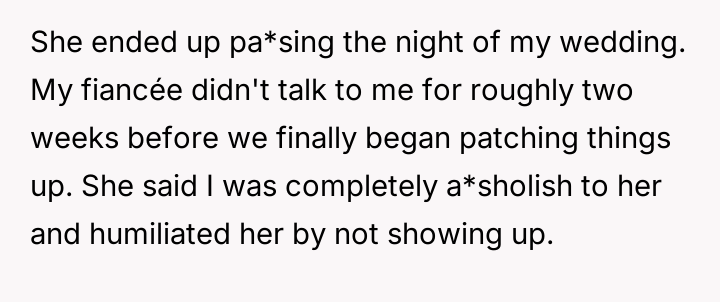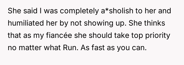 This created a severe conflict with his fiancée, who felt humiliated and believed her role as fiancée should have taken precedence over the last moments with his dying relative.