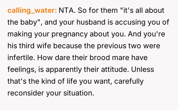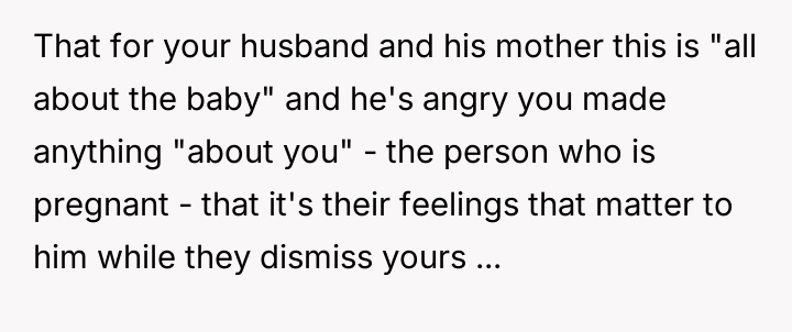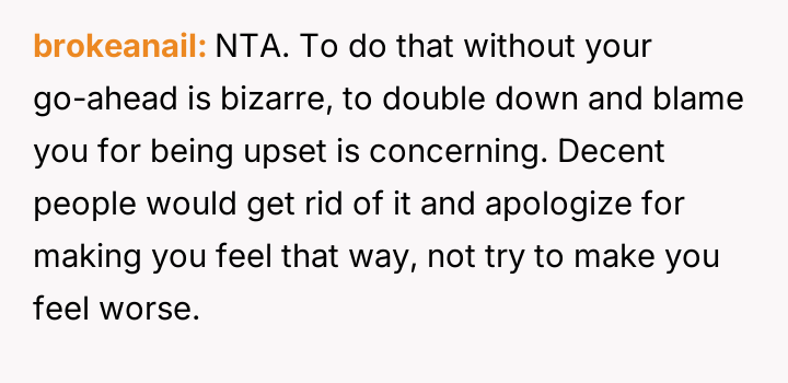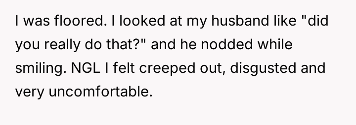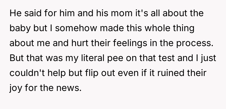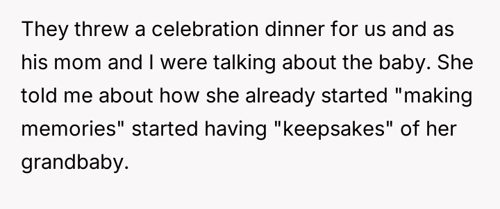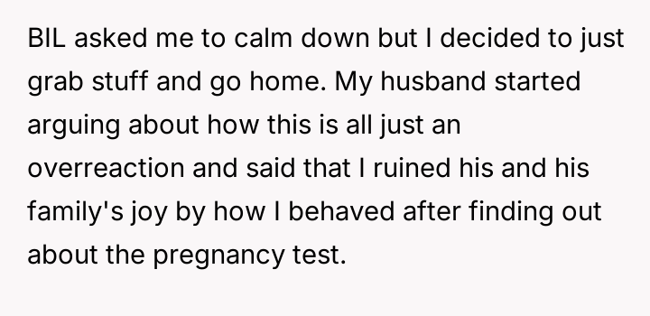 This action created a deep conflict: the husband and his family viewed it as a sentimental gesture celebrating the pregnancy, while the OP felt this crossed a significant personal boundary due to the intimate nature of the item. When faced with this boundary violation, the OP reacted with intense anger and left the event.