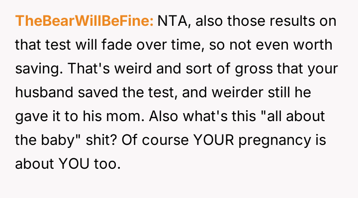 AITA for going off on my husband and his mom for taking/keeping my used pregnancy test?