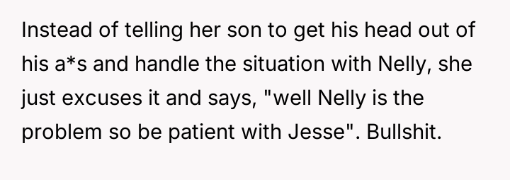 Each dismissive comment from Nelly felt like a quiet betrayal, deepening the ache she carried as she watched Jesse’s passive acceptance.