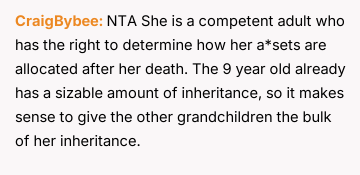 The Original Poster (OP) supports their mother's decision to distribute an inheritance unequally among the grandchildren based on financial need and existing wealth.