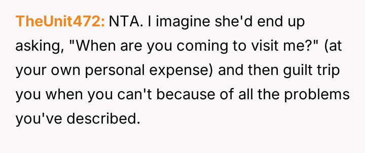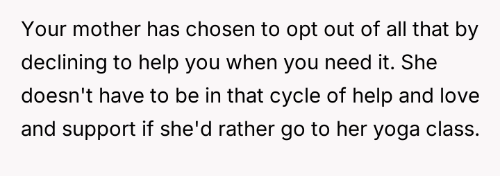 Given the OP's critical need for support versus her mother's stated preference for personal leisure, is it justifiable for the OP to enforce a complete communication boundary to prioritize her immediate family's well-being and signal the seriousness of her unmet needs?