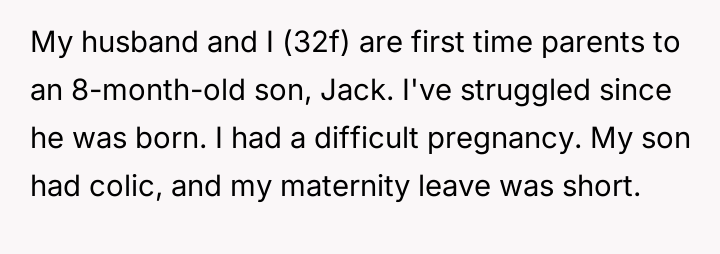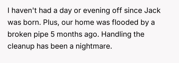 Her world is a whirl of sleepless nights, colicky cries, and a home still healing from a flood — all while her husband juggles his own burdens, leaving her isolated and overwhelmed. Amidst this storm, the absence of a mother’s support cuts deepest.
