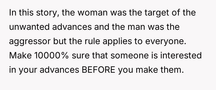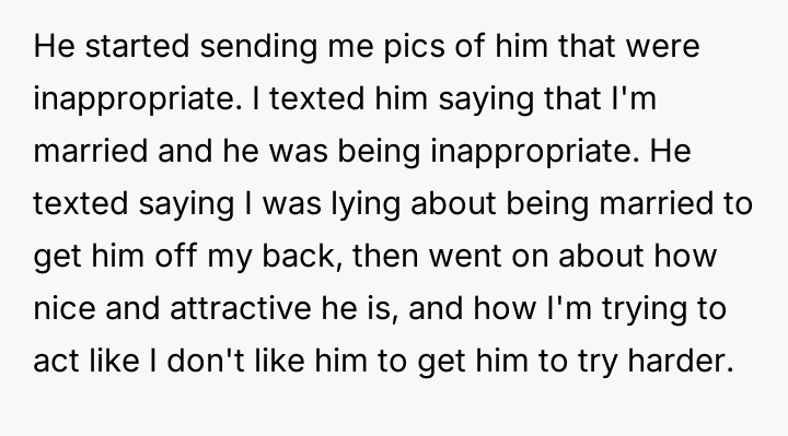 She tried to stand her ground, making it clear she was married and not interested, but his relentless advances only grew more invasive and aggressive.