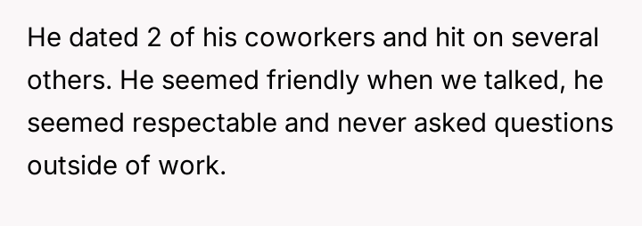 But for her, the promise of a supportive work environment quickly turned into a nightmare of unwanted attention and harassment from a coworker who used charm as a weapon, crossing boundaries and ignoring her pleas for space.