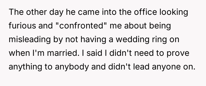 AITA? For not wearing a wedding ring and making my coworker think I'm single?
