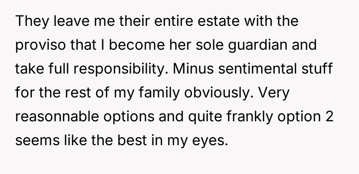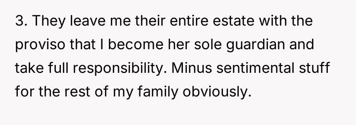 AITA for asking my parents for their entire estate if they want me to be my sister's guardian.