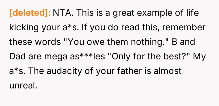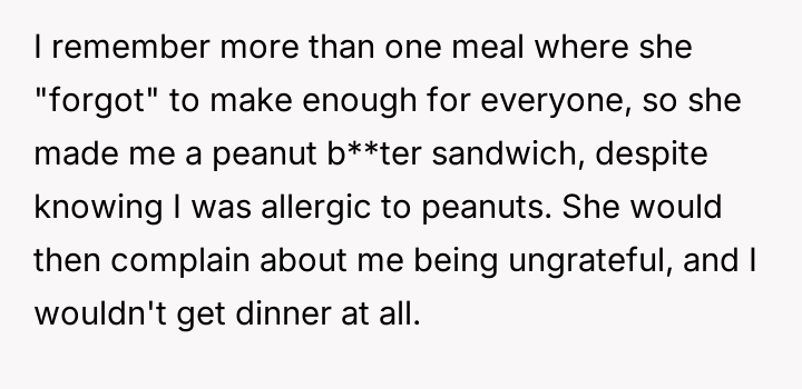 The original poster (OP) maintains a deep, unresolved hurt stemming from years of mistreatment by her stepmother and a profound sense of betrayal by her father, who failed to protect her.