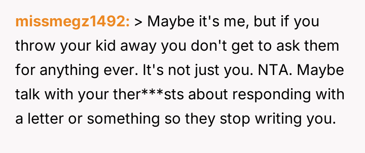 Her refusal to be tested for a bone marrow match is a direct consequence of this enduring resentment, viewing the request as an unacceptable demand from someone who abandoned her.