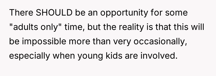 Given that the OP values one-on-one time but wishes to maintain the larger group dynamic, the central question becomes: Should the group respect the clear boundaries of members who desire child-free socializing, or is it reasonable for parents to expect their children to be included in all informal gatherings, even when those gatherings were previously established as adult events?