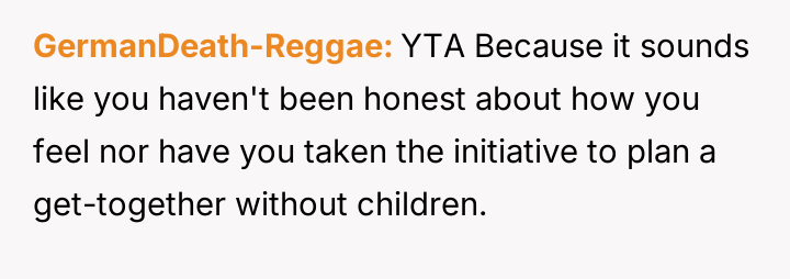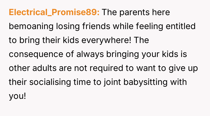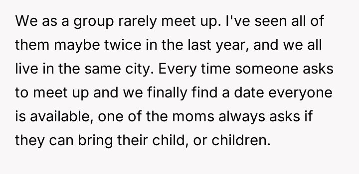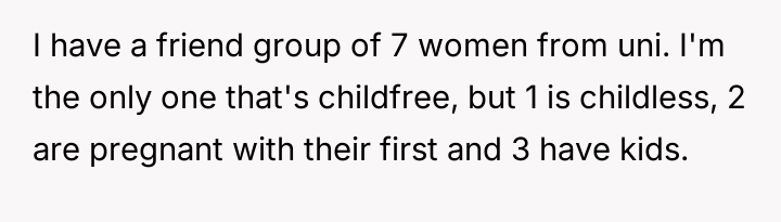Among them, one stands apart—childfree and yearning for the simplicity of genuine connection, yet repeatedly sidelined by the unspoken demands of stroller-filled gatherings and the relentless presence of children during their rare meetups.