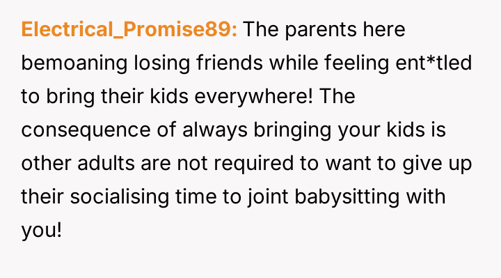 Among them, one stands apart—childfree and yearning for the simplicity of genuine connection, yet repeatedly sidelined by the unspoken demands of stroller-filled gatherings and the relentless presence of children during their rare meetups.