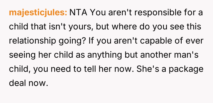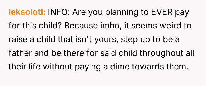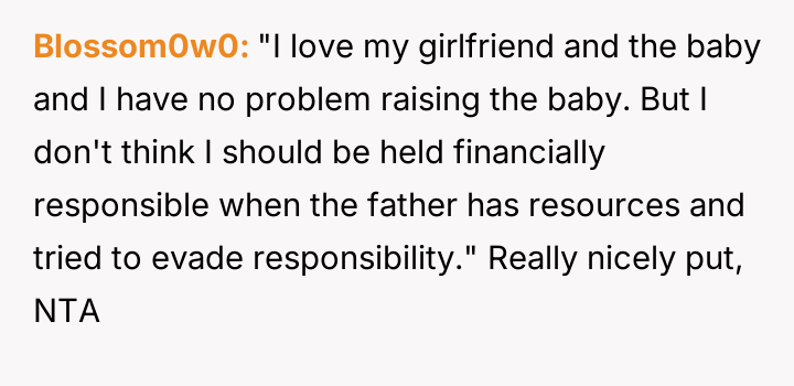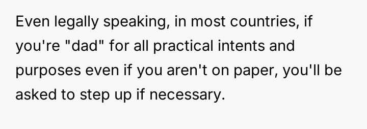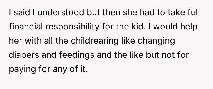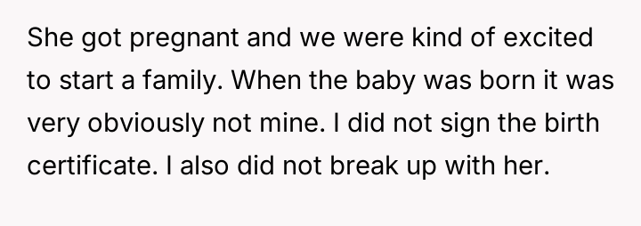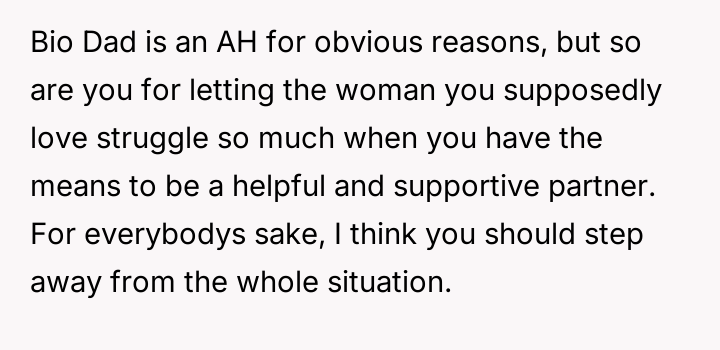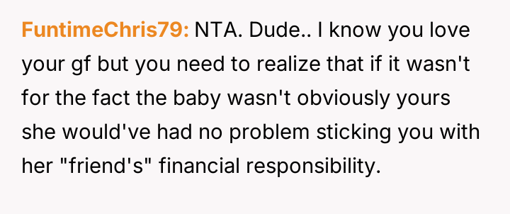 The central conflict arises from the OP's refusal to financially support a child biologically not his, despite offering full participation in caregiving, leading his girlfriend to feel abandoned in her financial needs when the biological father proved unreliable.