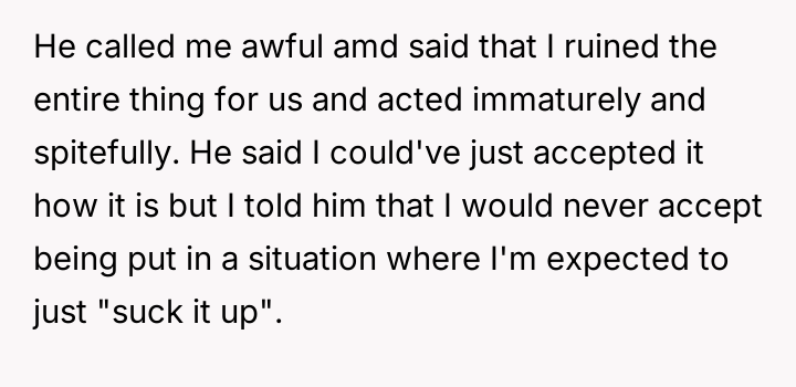 Her decision to leave immediately reflected her refusal to compromise on a clear boundary that had been repeatedly violated or ignored, leading to mutual anger and a temporary end to communication.