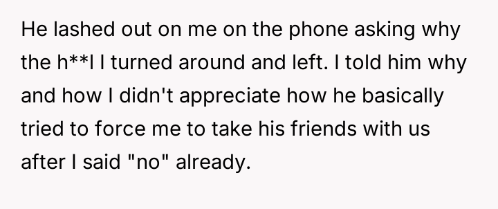 AITA for turning around in my car when I saw that my boyfriend brought his friends with him to go on a trip with us?