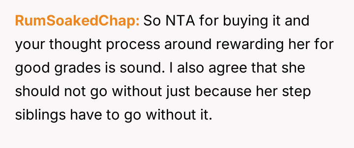 The original poster (OP) felt a strong desire to reward his daughter's academic achievement with a desired gift, placing his parental prerogative above his ex-partner's concerns about fairness among the siblings.