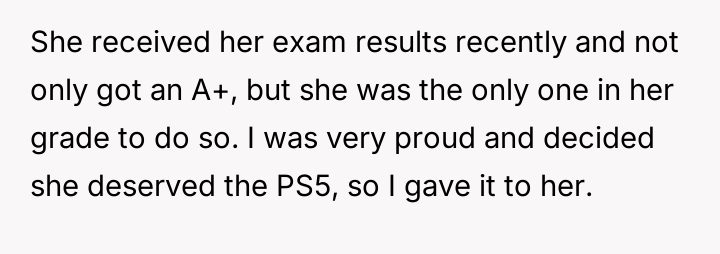 He had planned a special reward, a symbol of her hard work and dedication: a PS5, a dream she had longed for, meant to celebrate her triumph and encourage her spirit.